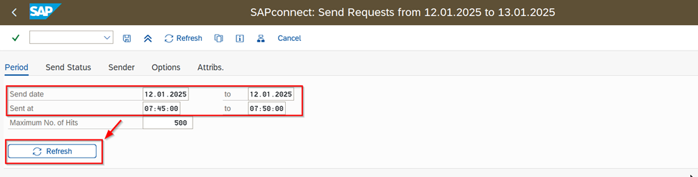 - Enter the date and time of submission and click the “Refresh” button.