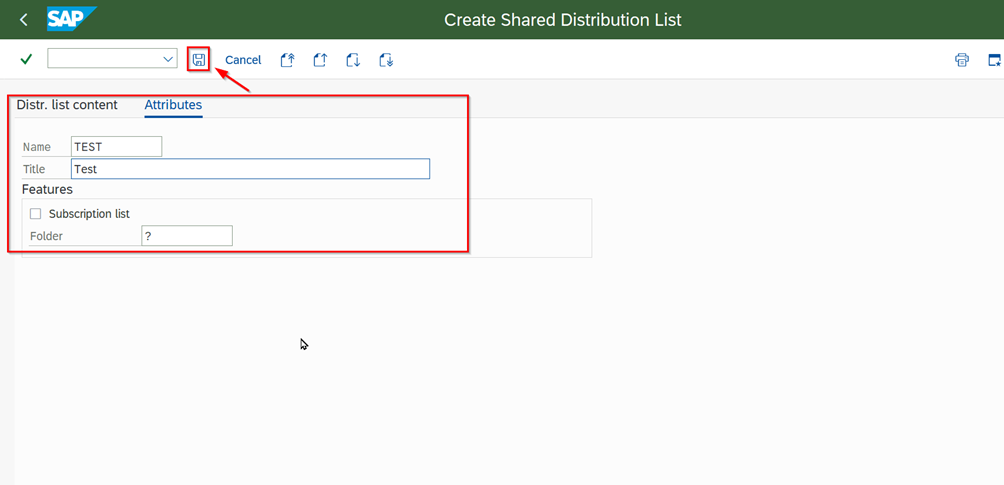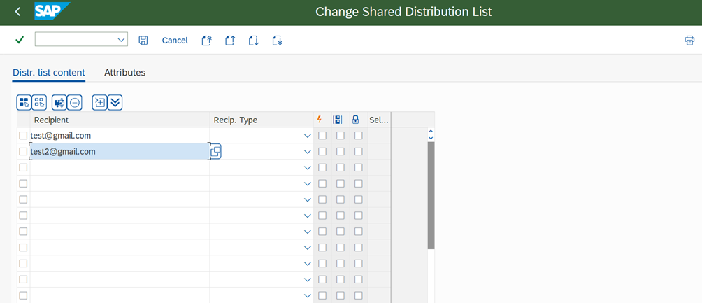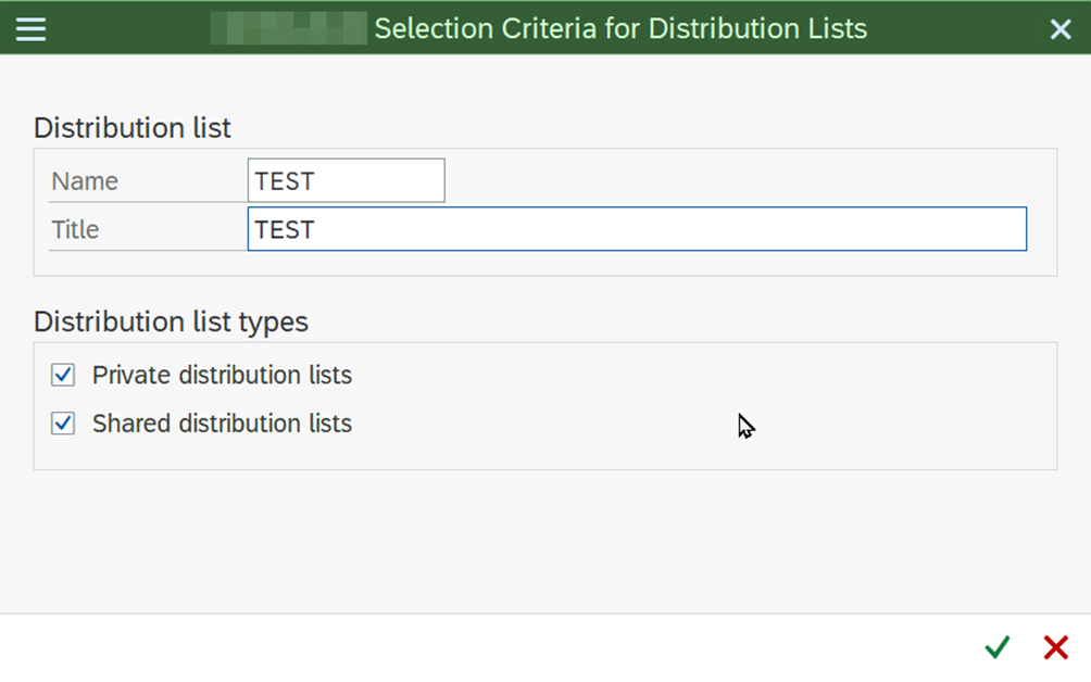- The previously created distribution list is entered and confirmed.