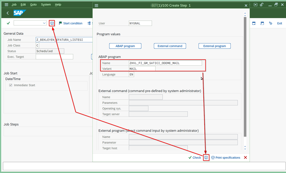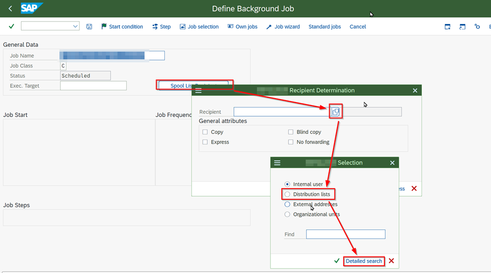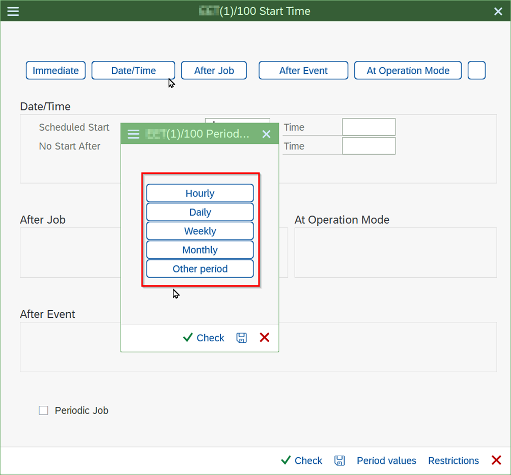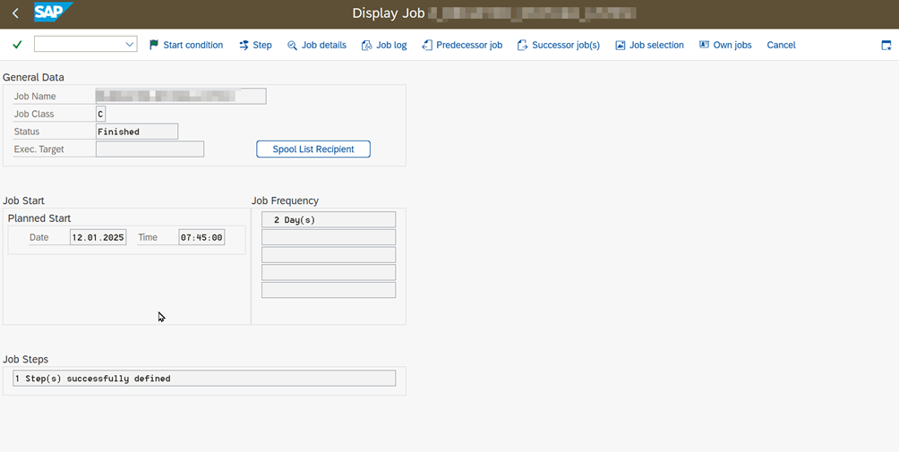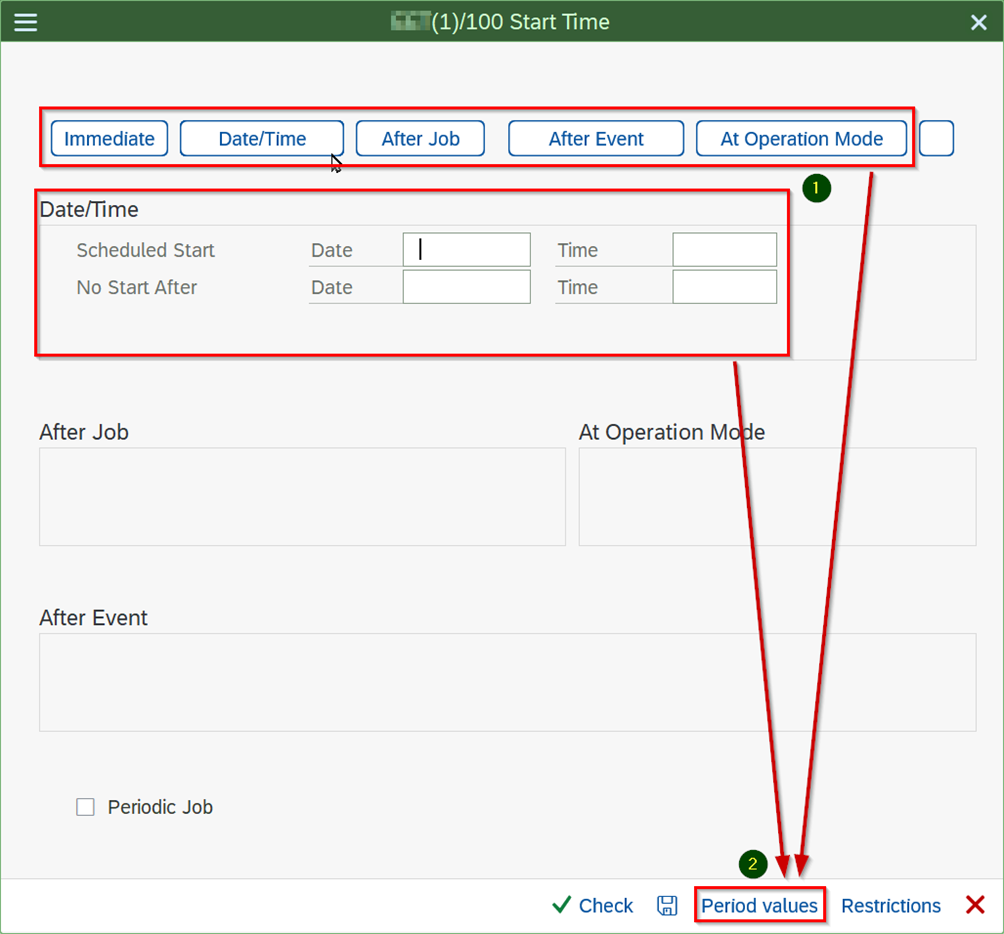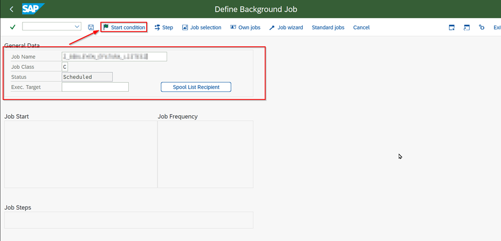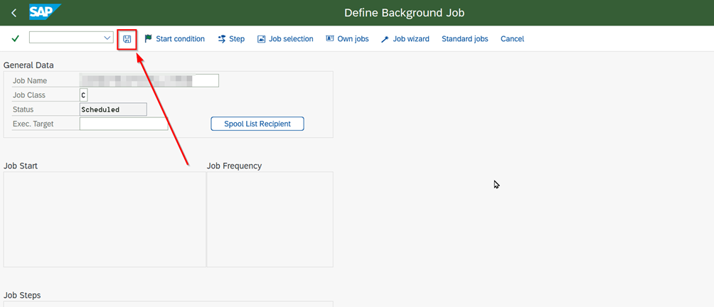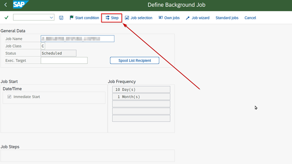 - Go to the “Create Job” screen with transaction code “SM36”.