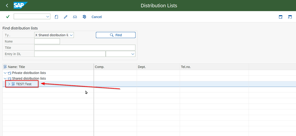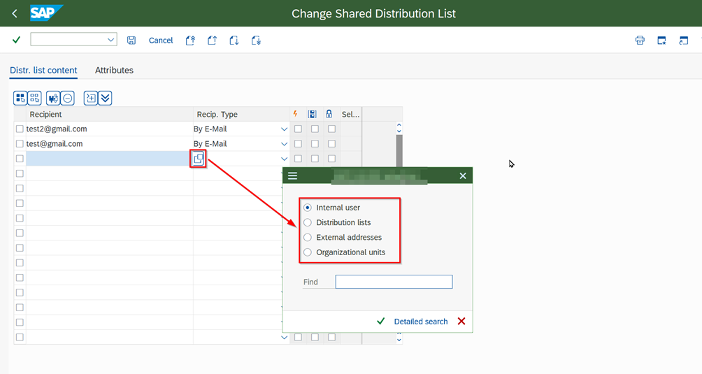 - Select “Distribution lists” option and click on “Detailed search”.