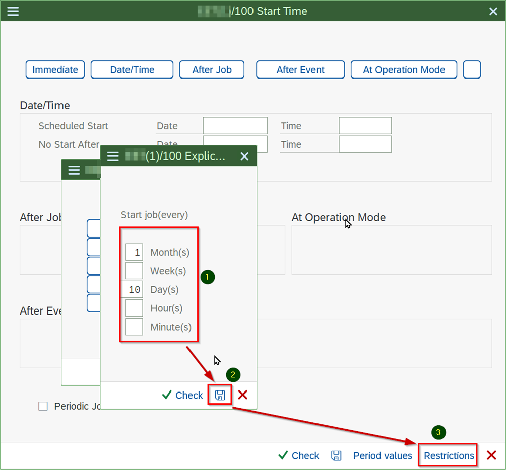 - Select the first start time of the Job.