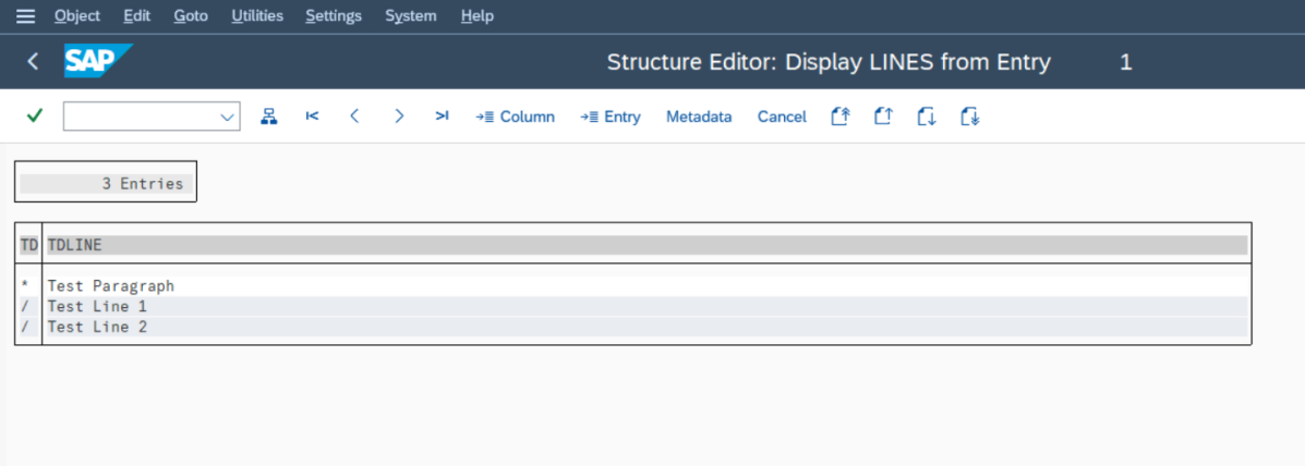 3. Retrieving and Displaying the Long Text After executing the READ_TEXT function module, the long text associated with the document line item will be displayed on the screen. The four parameters previously identified must be correctly entered to ensure the proper retrieval of the text.